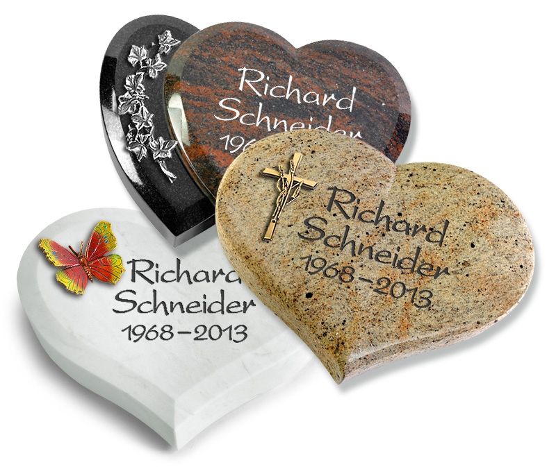 Grabherzen werden oft als Massenware produziert und dann billig mit Lasergravur im Internet verkauft und es erinnert hier nur noch die persönliche Inschrift an die verstorbene Person. Jedoch sind die Kosten handwerklich gefertigte Inschriften von Bildhauern nicht selten nur unwesentlich höher als Urnengrabsteine aus industrieller Großproduktion. Unsere Steinmetzmeister fertigen romantische oder rustikale Grabherzen nach Ihren Wünschen und denen des Verstorbenen individuell. Was das Grabherz dann genau kostet, lässt sich nicht pauschal sagen, da dies von mehreren Faktoren abhängt. Je aufwändiger des Grabherz bearbeitet werden muss, desto höher fallen auch die Kosten aus. Ein Grabherz-Preisvergleich lohnt sich in jedem Fall. In unserem Onlineshop bieten wir Ihnen ein breites Sortiment anspruchsvoll gestalteter und hochwertiger Grabherzen als Wiesengrabsteine zu günstigen Preisen an. Da wir in Bezug auf die Verkaufsfläche und das Personal Kosten einsparen können, geben wir diesen Preisvorteil gern an unsere Kunden weiter. Neben unseren vielfältigen Grabherzen können Sie ebenso hochwertige Grabsteine in Herzform für Ihr Familiengrab sowie Kindergrabsteine und Tiergrabsteine und exklusiven Grabschmuck bei uns zu günstigen Preisen online bestellen und kaufen.